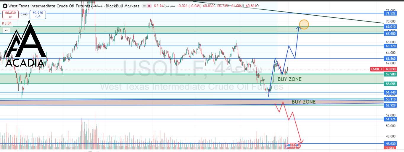 يتداول النفط الخام فوق منطقة *BUY ZONE* الممتدة بين *58.00 – 59.90*،